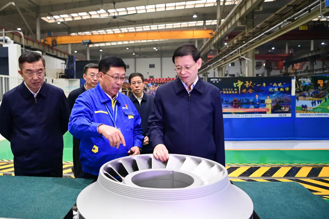 在戴繼雙陪同下,許昆林走進企業(yè)展覽展示中心、轉(zhuǎn)子車間,詳細了解沈鼓集團的發(fā)展歷程、科技創(chuàng)新成果和工藝流程,實地了解數(shù)字技術(shù)賦能實效。戴繼雙詳細匯報了沈鼓集團深入貫徹新發(fā)展理念,加快推進重大技術(shù)裝備高端化、智能化、綠色化轉(zhuǎn)型,實現(xiàn)高水平科技自立自強,解決“卡脖子”難題,在180萬噸乙烯“三機”、十萬等級空分壓縮機、空氣儲能壓縮機、三代核主泵等能源化工領(lǐng)域核心動設(shè)備實現(xiàn)國產(chǎn)化新突破等相關(guān)情況。