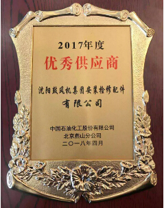 近日,中國石油化工股份有限公司北京燕山分公司隆重召開2017年度優秀供應商評價表彰大會,沈鼓集團安裝檢修配件有限公司(以下簡稱安檢公司)榮獲中石化燕山分公司2017年度優秀供應商榮譽稱號,與全國各地41家優秀供應商一起,接受中石化總部領導頒獎。