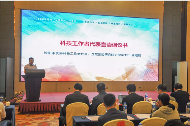 沈鼓集團研究院力學室主任孟繼綱代表全市科技工作者宣讀倡議書