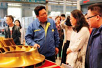 蒞臨沈鼓的各位領導及多家媒體一行,先后在轉子車間參觀、在主樓206會議室與集團各崗位優秀女職工代表進行親切座談。